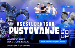 Študentska organizacija Univerze na Primorskem (ŠOUP) z veseljem napoveduje Vseštudentsko pustovanje 2025, ki bo potekalo v torek, 4. marca 2025, v dvorani Grando Portorož. Dogodek se bo začel ob 21. uri. Obljubljamo vam nepozabno pustno rajanje in zabavo, ki si jo boste zapomnili!