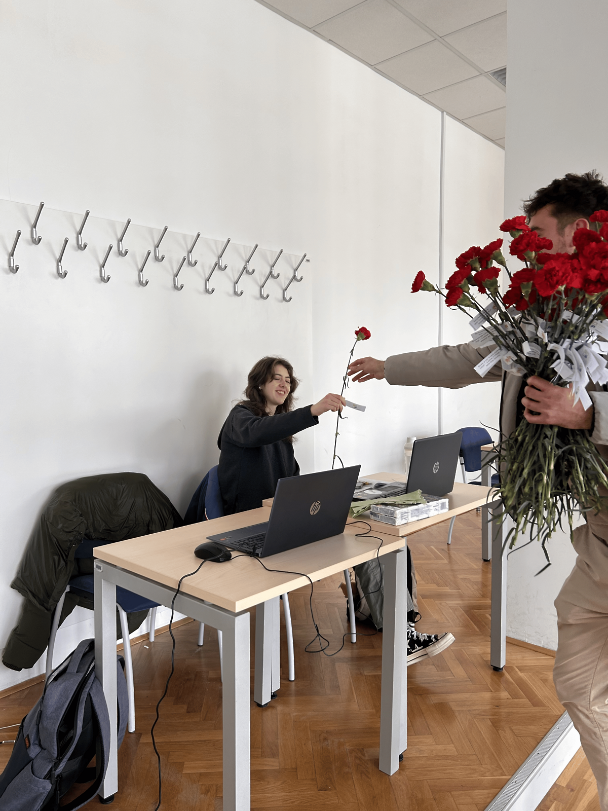 Na Študentski organizaciji Univerze na Primorskem (ŠOUP) smo tudi letos obeležili praznika, ki sta posvečena ženskam in moškim. V ponedeljek, 9. marca 2026, so fantje iz ekipe ŠOUP študentkam Univerze na Primorskem delili rdeče nageljne in s tem simbolično obeležili mednarodni dan žensk ter polepšali dan številnim študentkam.