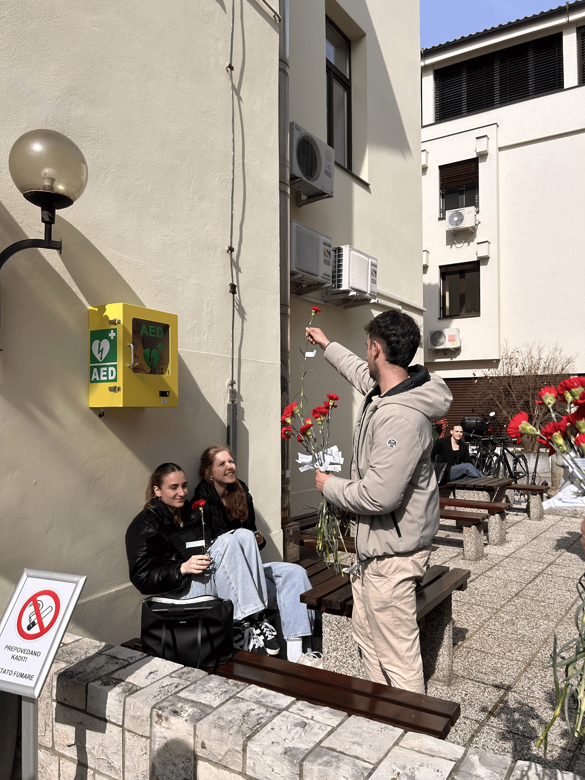 Na Študentski organizaciji Univerze na Primorskem (ŠOUP) smo tudi letos obeležili praznika, ki sta posvečena ženskam in moškim. V ponedeljek, 9. marca 2026, so fantje iz ekipe ŠOUP študentkam Univerze na Primorskem delili rdeče nageljne in s tem simbolično obeležili mednarodni dan žensk ter polepšali dan številnim študentkam.